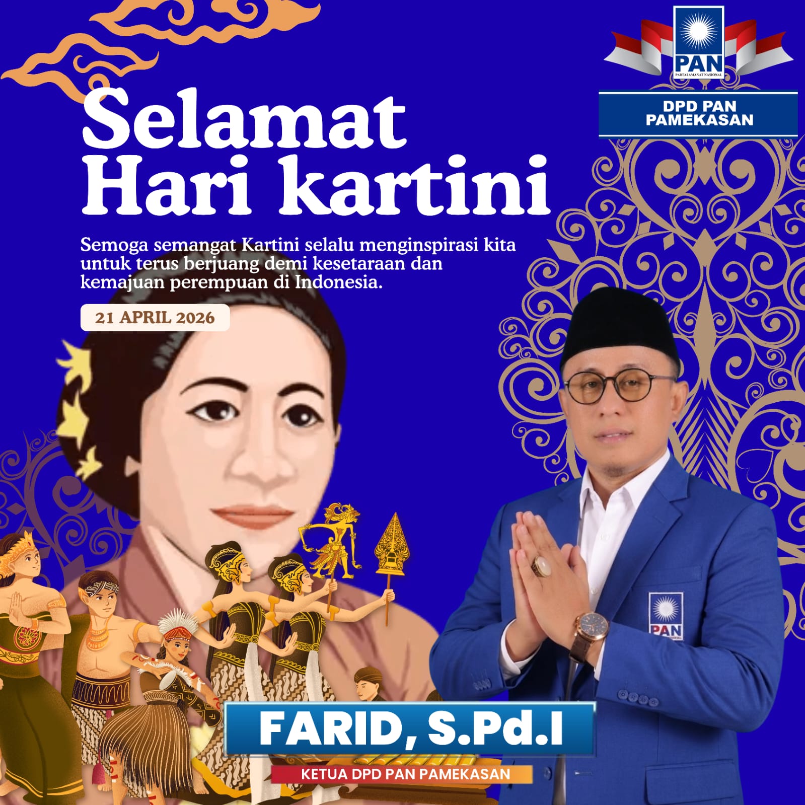 Farid, Ketua DPD PAN, menyampaikan harapannya pada peringatan Hari Kartini agar perempuan di Indonesia semakin berprestasi dan mendapatkan penghargaan yang layak atas kontribusinya di berbagai bidang.